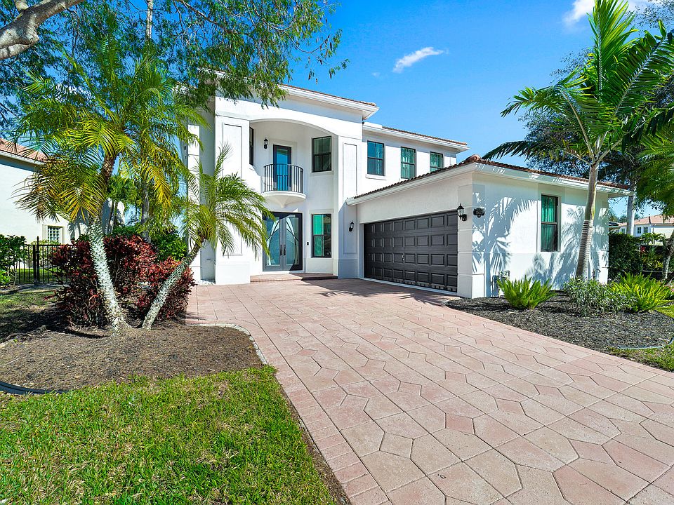 WOW home!!! Step into the perfect blend of indoor and outdoor living in this STUNNING, updated 4 bedroom plus office/den, 3.5 bathroom, 2-car garage, WATERFRONT, POOL home with an ELEVATOR. It nests on a quiet 0.19 acre lot in coveted Black Diamond Wellington community, A-RATED elementary and middle schools! Notable features include IMPACT windows and doors (2023), tankless water heater, two-zoned ACs (2020 and 2021), built-In speaker system, built-ins in all closets, recessed LED lighting, dimmable switches, beautiful deco wall in the living room and French doors in the den. There is gorgeous marble and hardwood flooring throughout. The gourmet kitchen was renovated in 2022 and is equipped with beautiful granite countertops, shaker cabinets topped with moldings, backsplash, stainless steel appliances and vent, wall oven, wine cooler and a butler pantry. There is one bedroom, den, full cabana bathroom and ½ bathroom on the ground level. The primary bedroom features tray ceiling, nursery/sitting space, his and hers walk-in closets and a covered balcony overlooking the lake. En-suite primary bathroom is finished with split sinks and granite counters, plus a stand-alone soaking tub and shower with seamless glass doors and rainfall showerhead. The upstairs loft is great for privacy and entertainment. Step out and relax by the refreshing, heated, saltwater pool on the serene lake, and a private, paved patio with LED lights. There is a new full size washer and dryer (2023) inside. The garage is finished with commercial grade polyaspartic floor coating. The TV in the living room is negotiable. Black Diamond is conveniently located to grocery stores and shopping plazas. All measurements are approximate. Take a look at the 3D virtual walk-through.