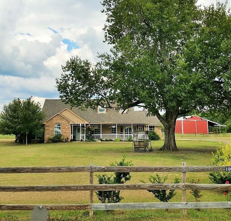 Three bedroom, Two Bath, Two Story home with large game room upstairs which could be used as an additional bedroom. Property is partially fenced with older pole barn and metal hay barn. Large mature trees scattered around the home site. Back yard features covered porch and 14 x 21 pergola. Property has a well and round pen for horses.