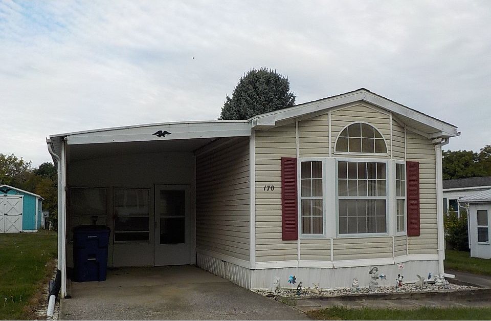2 Driveways. 2 bedrooms, 2 full bathrooms. Addition aprox 7x8 office and 7x8 formal dining area withbuilt-in. Eat-in kitchen, laundry off kitchen, living room with vaulted ceiling. Rear patio. Utility entry room. Carport. Park approval is required before offer submitted. Park office is on right as you enter. 170 is on Locust Lane. Water & sewer are divided equally for each home. POA has never lived in the home and said he has no info for disclosure.