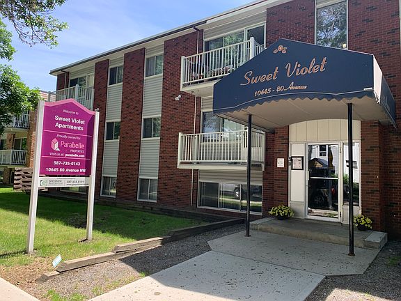 AboutSweet Violet is found on the west side of Whyte Avenue, close to the University of Alberta and the U of A Hospital. It is minutes from the downtown core, with excellent transit in the area that allows you easy access to the rest of Edmonton. Schools, parks, sports facilities and churches can all be found within walking distance of Sweet Violet perfect for all kinds of people. Call us to view your new 1 bedroom apartment. We're excited to help you settle into your new home Limited Time Offer, Subject to Change, Exclusions Apply.Community Amenities- Outdoor parking- On-site staff- Laundry facilities- Public transit- Shopping nearby- Parks nearby- Schools nearby- Secure entry- App-controlled laundry machinesSuite Amenities- Fridge- Stove- Balconies- Hardwood floors- Individual thermostats- In-suite storageUtilities Included- Heat- Water