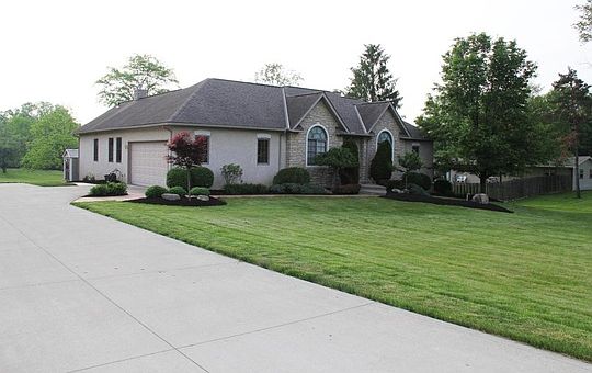 Custom ranch across from Muirfield has 4 beds, 3.5 baths, 2 full kitchens, 3 fireplaces & 1st floor laundry. Open kitchen has cherry cabinets, granite counters, built-in double oven, eating area for 6-8 people w/more seating in formal dining room. Owner's suite has cathedral ceilings, see-thru fireplace w/jetted tub & separate shower. The other main level bedrooms are nice size. Living room could be used as an office or 5th bedroom. Large deck NEVER needs staining. Lower Level has Theater Room with 120' screen & 7.1 Surround Sound. Glass French doors open to Billiard Room w/vent-free fireplace & exercise area w/mirrored walls. The 4th bedroom has a living area, kitchen w/granite counters & full size bath. Lower Level has tall ceilings, full size windows & a 42' door that leads out to patio