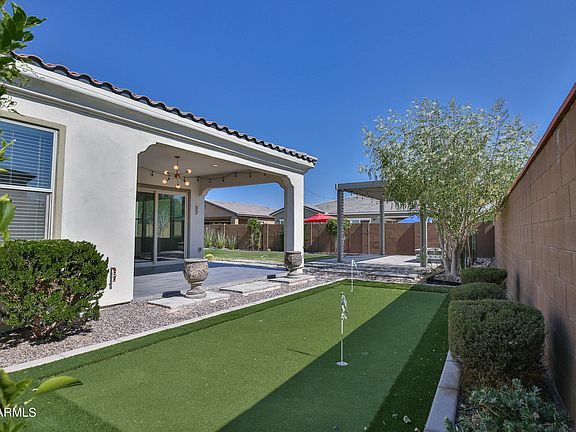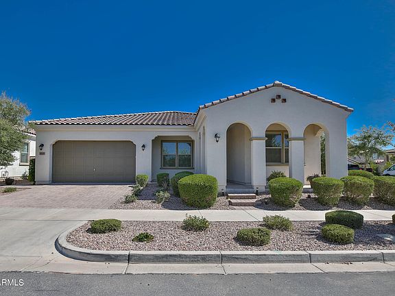Eastmark Beauty! 4 bedroom, 3 full bath, and tandem 3 car garage. Beautiful corner lot with manicured landscaping and right across the street from the park! Dual closets in primary bathroom, den/office in front room, entire interior was just repainted, a large ensuite with a full bath and a walk-in closet. The great room and oversized dining room allow you to comfortably entertain all of your guests. GOURMET KITCHEN, quartz countertops, SS appliances, gas cooktop, pendant lighting, elegant glass door cabinets, large gas cook top and a huge walk-in pantry. Well manicured and low maintenance backyard - perfect for entertaining! Gas firepit, putting green and extra storage! This home is a STUNNER and move-in ready. Schedule your showing to