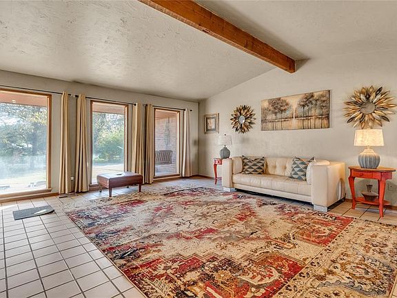 Inside, you'll find 1,600 sq ft of beautifully maintained living space. The living room stuns with vaulted ceilings, exposed beams, and floor-to-ceiling windows that flood the space with natural light. It's an ideal layout for both cozy nights in and lively entertaining.