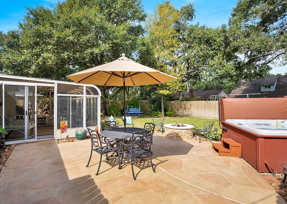 Incredible updated Spring Branch home only minutes from Sam Houston Toll Road and I10 tucked away in a quiet neighborhood. This lovely 1 story, 3 bedrooms, 2 bath home features a wonderful sunroom, and a large 6 person hot tub on an extended patio with your very own firepit. Energy-efficient home with recent double pane windows and upgraded electrical panel to 200 amp panel, full rain gutters. Kitchen updated with granite countertops, gas cooktop plus additional cabinets added with glass front doors and pull out drawers. Real hardwood flooring throughout living, dining, and kitchen. Both bathrooms updated, primary bath has an updated tile surround shower, vanity, and lighting. The sunroom offers a wonderful way to enjoy the outdoors all year with gas heat and AC. It provides great views of your wooded and lushly landscaped backyard, the hot tub and firepit. The firepit has a natural gas line so you can enjoy a fire without the hassle of adding wood.