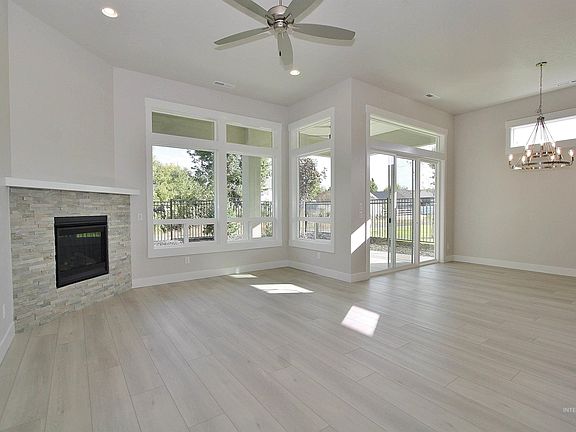 The Lakeview D-5.2 Model by Emmett Price Homes! Popular single level home with oversized 2 car garage 29'x26'. Stunning stone/stucco exterior facade with elegantly designed elevation. Quartz counter tops, SS Bosch appliances, kitchen island & breakfast bar, double ovens, gas cooktop, microwave, large walk-in pantry, laminate flooring and huge great room with 11'6" ceilings and gas fireplace. Owner's suite with large walk-in closet, dual vanities in bath and walk in shower. Large covered patio, full sprinklers & landscape, community pool, fiber optic internet, clubhouse, pathways and much much more! High Efficiency HERS rated home! Photos similar.