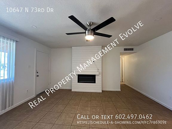 Welcome to this 3+-bedroom, 2-bathroom home located in Peoria. Kitchen has nice, white cabinets, granite countertops, and includes all major appliances. Bathrooms feature upgraded vanities and custom tile showers. Bonus room with built-in desk can be used as a fourth bedroom, den, or office. Living area has a fireplace! Washer and dryer included and tile and ceiling fans throughout. Large backyard with covered patio and storage sheds. Check this one out! *Pets accepted with applicable pet deposits and fees. Dryer Stove Washer