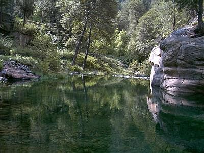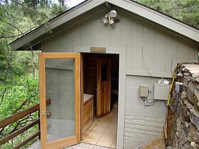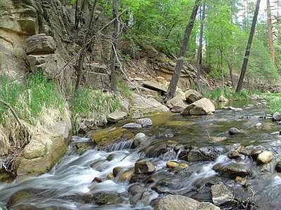 CREEK FRONT OVER one acre - Tarzan never had it so good, more outdoors then in. Truly one-of-a-kind creekside property. 1.13 green, lush acres with steps to the best fishing and swimming hole on Oak Creek. SURROUNDED by Forest Service. Incredible outdoor entertaining (or relaxing)amongst the Pines while the water symphony envelops you. Inground, water therapy & exercise Endless pool, outdoor hottub, steam sauna. This cabin Mountain home featuring reclaimed wood floors and floor to ceiling windows to bring in the abundance of sunshine, Oak Creek below & the sheer beauty of the canyon cliffs.