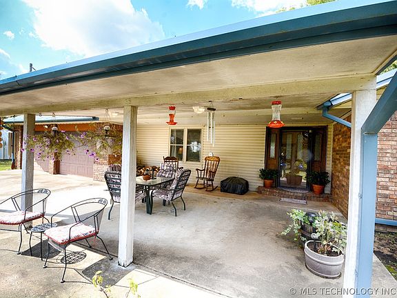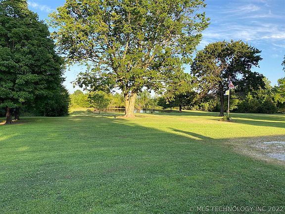 A large, well-kept ranch style three bedroom, two and half bath home sitting on 10 acres overlooking a well-stocked pond. Office space off the garage could make an additional bedroom. Formal dining room. Laundry room includes half bath. Sip your sweet tea on a large covered porch while watching the wildlife. The metal roof is less than 10 years old and the A/C unit is less than 3 years old. The property is fenced with a shed, barn and two storage buildings. Easy access to I-40 or Muskogee Turnpike.