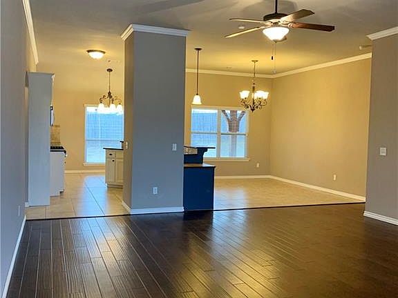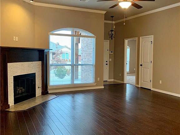 New carpet & paint in this energy efficient beautiful split plan w/ engineered wood floors in living & hallways. Fans added to all guest bedrooms. Kitchen offers granite counter tops, plenty of storage & prep space w/ under cabinet lighting, breakfast nook & bar. 10' ceilings in living, kitchen, dining & master. Crown molding in master & main living areas. Master suite has walk-in closet, garden tub w/separate new tiled shower & double vanity. Lighting added over garden tub and tiled shower. Home has been enhanced for outdoor living with a new 12'x13' front porch; 5 eave lights added for use day or night. The back has a spacious 27'x8' covered patio w/ added lighting & fan. A 10'x11' concrete pad added for outdoor dining space, & 10'x16' pavers were laid for firepit space. 10'x8' shed in back & a pear tree. Eave outlet also added with indoor switch for seasonal lighting. 12-14 person storm shelter 7ft L x 5ft W x 5.5ft H. Over $12,000 in improvements have been added to this great home.