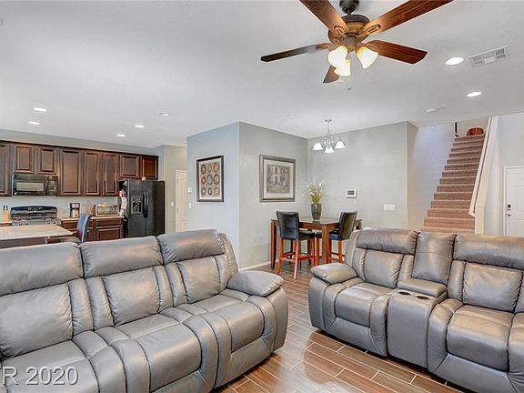 Upgraded Lennar home in beautiful Mountains Edge. Spacious open floor plan, beautifully upgraded kitchen with granite counters, large island and open to living areas. Upgraded wood like tile flooring down stairs. Spacious bedrooms. Ceiling fans in all rooms. Tech center upstairs. Raised high effeciency toilets. Community offers a pool, spa and a park on top of all of the amenities of Mountain Edges parks, trails and shopping nearby. Solar panels are owned, not leased, with your buyers reaping the benefits. Summer's electricity bills were approx $75/m! Maintenance free back yard. Water treatment system in place, new garage door and opener recently replaced. Your buyer wont be disappointed.
