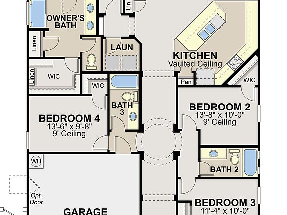 This stunning new home features four bedrooms, three baths and a two-car garage. The center-island kitchen overlooks the family room and dining room and features upgraded staggered white cabinets, quartz countertops with a tile backsplash and stainless steel appliances with a double oven and gas cooktop. Finishing touches include two-tone interior paint, a 20' multi-slide door, 8' interior door and upgraded flooring.