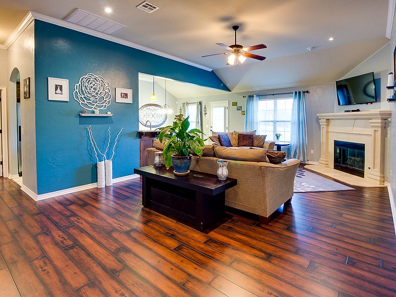Get into the prestigious Choctaw school district! The well manicured lawn of this home and front porch beckon you inside. Fresh colors and modern finishes make this home one to be desired. Imagine a fire on a cold night flickering off the gorgeous floors. High ceilings add a sense of space and height. The breakfast bar seamlessly connects the living room and kitchen with flawless granite. Tile backsplash, pantry, and beautiful cabinets finish out the kitchen with style. The study is the perfect spot for entrepreneurs and hobbyists alike. The Master Oasis boasts double sinks adding tons of space, a deep and relaxing soaker tub, and GIANT walk in closet. This home is a dream!