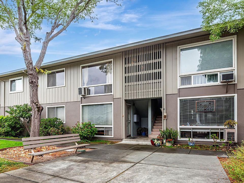 Welcome to this upper-floor 2-bedroom, 1-bathroom co-op condo. The home features Berber carpeting throughout. The kitchen offers tiled countertops with backsplash, stainless steel appliances, and tile LVP flooring, which also extends into the bathroom. A stackable washer and dryer add convenience. The living room includes a large closet for storage, an AC window unit, and large windows that bring in natural light. Both bedrooms feature closets with doors for a clean, finished look. An enclosed sunroom adds extra space and showcases Mt. Tamalpais views with stunning sunsetsperfect for relaxing or a home office. The community includes a beautiful pool, clubhouse, EV charging stations (almost completed), and beautifully landscaped grounds. Conveniently located near shopping, transportation, great hiking, Oleander Park, Kaiser hospital, YMCA and within the sought-after Miller Creek school district. The carrying charges cover property tax, PG&E, garbage, water, exterior and some interior maintenance including furnace, water heater, some plumbing and electrical, landscape and insurance walls in. This is San Rafael living at its finest!