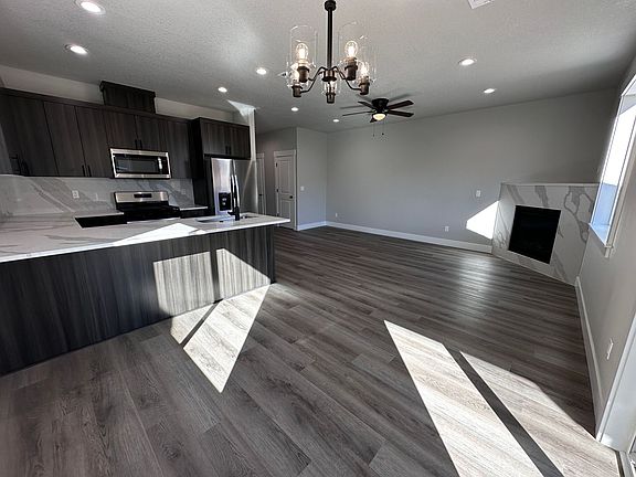 The home comes with a modern kitchen with stainless steel appliances and ample cabinetry.