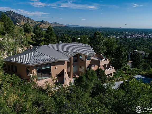 Bask in unmatched privacy and luxury in this four-bedroom, four-bathroom showplace home situated at the base of Flagstaff mountain. Bordered by protected Open Space, just six minutes from downtown Boulder, you'll enjoy total tranquility, unobstructed views, accessibility and plenty of room to stretch out and relax. This sleek, contemporary 7,028-square-foot home blends into its natural surroundings conveying an effortless indoor-outdoor lifestyle throughout. Perfectly placed decks and terraces flank nearly every room, and oversized windows frame postcard views in every direction. Italian marble, hardwood and carpeting run underfoot while kitchenette/wet bars, fireplaces and abundant built-in cabinetry make this an ideal haven for gracious entertaining or secluded relaxation. On the main level, you'll find an airy and bright living area and a granite kitchen beautifully equipped with top-notch stainless steel appliances, including a six-burner gas cooktop, a wall oven, French door refrigerator, dishwasher and built-in microwave. Ascend the winding, sculptural staircase to find inviting bedrooms and well-appointed bathrooms. Enjoy resort-like living in the spectacular master suite surrounded by walls of windows, a private terrace and an enviable custom walk-in closet. The spa-like en suite bathroom is outfitted with double sinks, marble vanity, jetted soaking tub, and a walk-in steam shower. The nearly 30,000-square-foot lot boasts sweeping panoramic views over the entire city and the total privacy of its non-buildable open space surroundings. This gorgeous Flagstaff neighborhood offers immediate access to abundant trailheads, Chautauqua, the Fox Theater and university campus. Downtown and Pearl Street attractions are just minutes away. This sleek, contemporary 7,028-square-foot home blends into its natural surroundings conveying an effortless indoor-outdoor lifestyle throughout. Perfectly placed decks and terraces flank nearly every room, and oversized windows frame postcard views in every direction. Italian marble, hardwood and carpeting run underfoot while kitchenette/wet bars, fireplaces and abundant built-in cabinetry make this an ideal haven for gracious entertaining or secluded relaxation. On the main level, you'll find an airy and bright living area and a granite kitchen beautifully equipped with top-notch stainless steel appliances, including a six-burner gas cooktop, a wall oven, French door refrigerator, dishwasher and built-in microwave. Ascend the winding, sculptural staircase to find inviting bedrooms and well-appointed bathrooms. Enjoy resort-like living in the spectacular master suite surrounded by walls of windows, a private terrace and an enviable custom walk-in closet. The spa-like en suite bathroom is outfitted with double sinks, marble vanity, jetted soaking tub, and a walk-in steam shower. On the lower level, a finished daylight basement is the perfect entertaining space with two bedrooms, a shared bathroom, an outdoor putting green, and a large rec room space with fully stocked wet bar. A gated dog kennel with sensored door makes life easy for pets. Outside, gorgeous native landscaping runs throughout the grounds and flanks the driveway to the three-car, 700-square-foot attached garage. The nearly 30,000-square-foot lot boasts sweeping panoramic views over the entire city and the total privacy of its non-buildable open space surroundings. This gorgeous Flagstaff neighborhood offers immediate access to abundant trailheads, Chautauqua, the Fox Theater and university campus. Downtown and Pearl Street attractions are just minutes away.