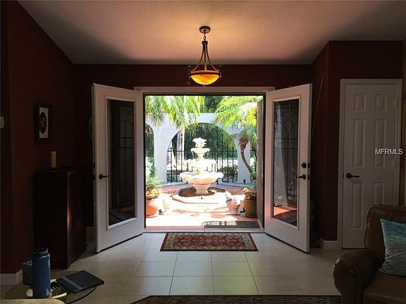 Sellers are ready to go! Home should be a sanctuary...and this one is! Leave the world at the door when you enter your own private courtyard through a stately iron gate under a graceful archway. Pause for a moment, and let the gentle song of your fountain with its two peaceful doves begin to wash off the day. Your home through double doors feels like a warm embrace. The ceilings soar with skylights and the tile is cool beneath your feet. This home was built by a prominent local builder for his own son, and it shows. Every visual delight and grace note says welcome in myriad ways. The current owners have loved this home for well over a decade, and their constant stream of improvements has continued to the present day. The owners installed a 50 year roof in 2005; all the bathrooms have been beautifully upgraded, as has the kitchen with granite counter tops and new cabinets. The pool is saltwater and the concrete seawall is 80' long. The property has steel hurricane shutters and an expanded pool cage. The foyer in the bedroom wing is huge, and closes off so guests can essentially have their own private area. This home is easy to show, and yes--the sellers may consider selling some of their lovely furnishings. $5000 hydro quad water processor is negotiable.