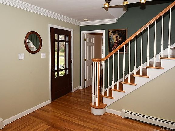 Character and charm from curbside through the interior is in abundance in this tastefully remodeled home. Enter the home from the covered front porch to an open floor plan with a great flow for family life or entertaining. Spacious living room with hardwood floors and crown moulding leads to a dining room with a dropped ceiling. The remodeled kitchen which is very appealing featuring new cabinets, travertine floor, all Stainless appliances, breakfast bar, beadboard accents and eating space will surely be the "heart of the home". Master bedroom on first floor is a generous size with hardwood floors and en suite bath with stall shower and whirlpool with corian topped vanity. At the top of stairs is a 300ft open area--great for office, play room, sitting room Three bedrooms and a full bath surround this space. Windows are Andersen, newer central vacuum, 50 year roof. Garage is a new addition 9 yrs ago with a walk-up loft. Energy saving wood furnace is in addition to a System 2000 furnace. Home is set back from the road offering privacy with State forest in the rear. Conveniently located Just about halfway between Hartford and Worcester. Foundation concrete came from a quarry in Massachusetts.