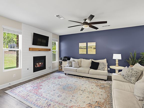 Welcome to this stunning 2021 new build featuring the sought-after "Ellington" plan, offering 5 spacious bedrooms and a thoughtfully designed open-concept layout. With 9-foot ceilings and 8-foot doors throughout the main level, this home feels both airy and elegant. The living area is anchored by a beautiful white shiplap fireplace, perfect for cozy nights in. The kitchen boasts granite countertops, a large walk-in pantry with added shelving, and hardwood floors that flow seamlessly throughout the downstairs area. The upgraded office with custom wainscoting adds a touch of sophistication, making it an ideal workspace. Situated at the back of the neighborhood, this home offers added privacy and quiet. Every Beazer home is also 100% Energy Star Certified. Enjoy resort-style living with access to the community’s 4-sided brick homes, a luxurious pool, cabana, and playground. Just minutes from Providence Place, this home truly has it all!