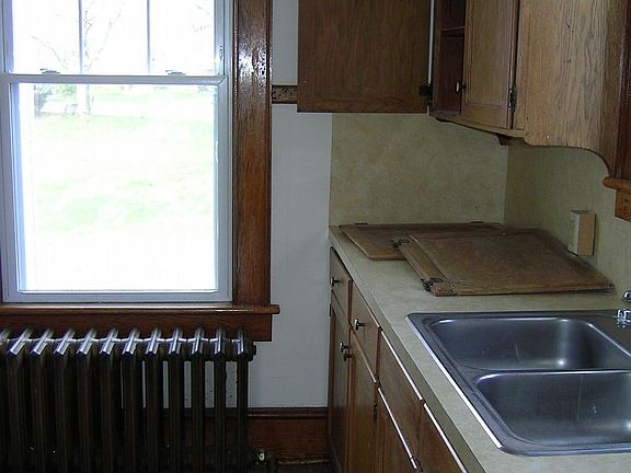Beautiful 3 bedroom 1 bath home on Chicago Ave. This home has nice hardwoods throughout the entire house. It has a large kitchen with a separate dining room area, spacious living room and upstairs you will find 3 good size bedrooms and bath. There is oil heat and window units are allowed for A/C units to be inserted.This home does have a unfinished basement where the full sized washer and dryer is located. There is a nice porch located on the southern side of the house. This home provides many windows that will accommodate a window A/C unit. This home is heated with oil.