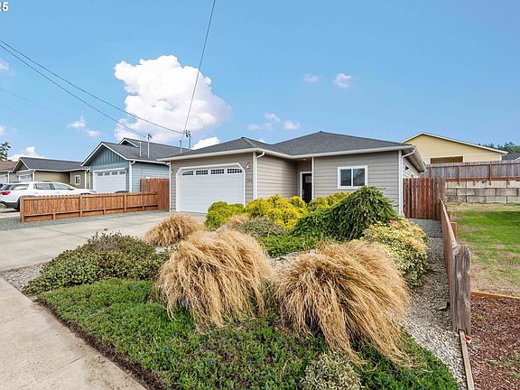 Built in 2015, this beautifully maintained 3 bedroom, 2 bathroom single-level home offers modern comfort, energy efficiency, and low-maintenance living. The front yard is xeriscaped for year-round curb appeal, while the fenced backyard features a covered patio and lush lawn—perfect for outdoor relaxation, gardening, or play. The yard is also equipped with a sprinkler system. Inside, the open floor plan creates a seamless flow between the spacious living room, dining area, and kitchen. The kitchen is designed for both style and function with granite countertops, stainless steel appliances, a tile backsplash, and abundant cabinetry. The bedrooms have all brand new carpet. The private primary bedroom includes a large walk-in closet and ensuite bathroom, while two additional bedrooms and a full bath provide flexibility for family, guests, or a home office. Neutral finishes, abundant natural light, and quality craftsmanship make this home move-in ready. Complete with an attached two-car garage and a convenient location close to shopping & schools, this home has modern amenities and everyday practicality. Come see all of the great thing the Oregon Coast has to offer, crabbing, fishing, hiking, sand dunes and so much more!