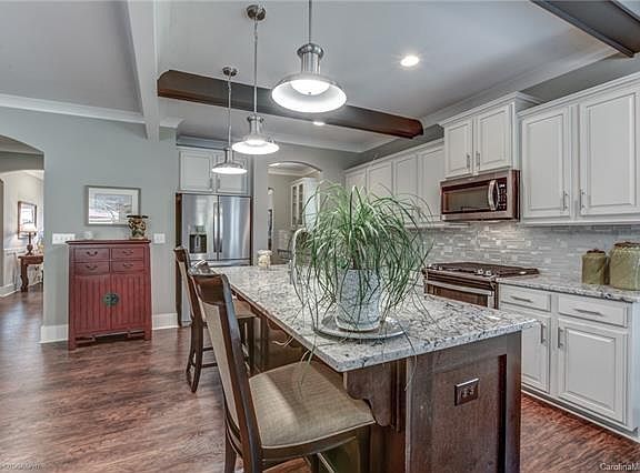 Luxury home in the prestigious Pinnacle at Handsmill community. The owners added nearly $40,000 in after-market upgrades to make this one a designer's dream worthy of Better Homes and Gardens magazine! No detail was overlooked. You'll be captivated by the styling found in every room. You'll notice its unique beauty as soon as you arrive, with its rocking chair front porch and lavish landscaping set on a very private lot. Once inside make sure to note the barn door closure in the master suite, the closet systems they installed, and the 4" plantation shutters, just to name a few. There is 288 sf of walk in storage too. This waterfront community has all the amenities of a resort; lake, 2 marinas, public boat launch, club house, fitness center, huge pool and so much more. The only thing missing is YOU! Live only 10 minutes from the bridge to Charlotte while enjoying low SC taxes and award winning Clover schools. Welcome home!