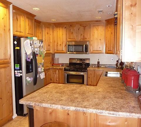 3/2,1225 sq.ft. pergo floors in living room, alder cabinets in kitchen, stainless steel appliances, large covered patio, play house and swing set stay, gated boat parking.