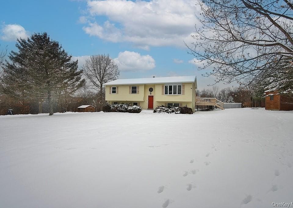Welcome to this private and spacious raised ranch located in the Town of Wawayanda within Middletown School District. Set on 1.5 acres with exceptional privacy, this three-bedroom, 2.5-bath home offers a versatile layout and a convenient location close to everything. The main level features a bright, open floor plan with a combined kitchen, living, and dining area, ideal for everyday living and entertaining. Three well-sized bedrooms and two full bathrooms complete the upper level. The home features hardwood flooring throughout and has been freshly painted, offering a clean, move-in-ready feel. The lower level provides excellent bonus space, including a large finished room perfect for a family room, home office, or guest area, along with an additional full bathroom, laundry area, and access to the two-car garage. Recent upgrades include improvements to flooring, windows, and bathrooms, adding comfort and value. Outside, enjoy the expansive deck overlooking the private backyard, an above-ground pool for summer enjoyment, and a storage shed. The 1.5-acre lot offers plenty of room to relax, garden, or entertain. Conveniently located less than one mile from I-84 and Route 17M, with minutes to shopping, restaurants, public transportation, and all local amenities. Numerous upgrades have been completed over the years, and the home simply needs some minor TLC to make it truly shine. A great opportunity to own a home with space, privacy, and unbeatable accessibility.
