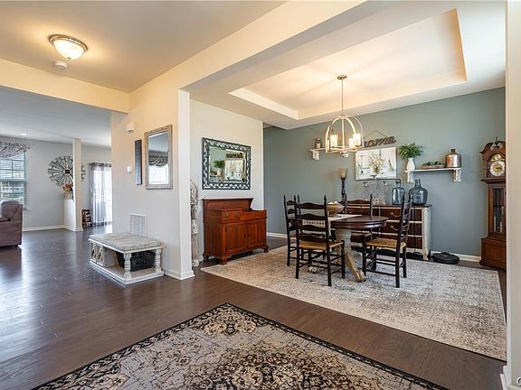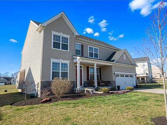 Step into this exquisite 4BR, 2.5BA home, where modern comfort meets elegant living. Just 5 years young. From the moment you enter the large foyer, you're welcomed by the warmth of HW flooring throughout the 1st floor. The home flows seamlessly into a formal LR & DR highlighted by a tray ceiling, setting the scene for memorable gatherings. The heart of the home is the spacious kitchen, featuring SS appliances, double wall oven, central island, granite countertops, & a pantry for all your culinary needs. Adjacent to the kitchen, a very large FR & breakfast area awaits, spacious enough for a full dining table, perfect for family meals. The 1st floor also boasts a convenient entry off the garage as well as a laundry room. Upstairs, a generous loft area offers a versatile space for entertainment or relaxation. 3 BRs, each w/walk-in closets & ceiling fans, a full bath, while the master suite presents a luxurious retreat w/a tray ceiling, crown molding, ceiling fan, private ensuite, & a huge walk-in closet. The full, unfinished basement holds the potential for more living space or storage. The 2-car garage provides ample space for vehicles & storage. Outdoor living is just as impressive, w/a deck large enough for dining & grilling, also featuring a fire pit for evenings under the stars. This home is located close to shopping, dining & a large park, blending convenience w/the tranquility of suburban life. Don’t miss the opportunity to make it yours. Schedule your showing today!