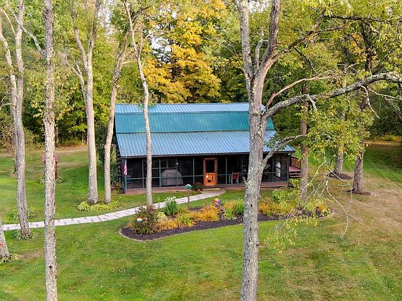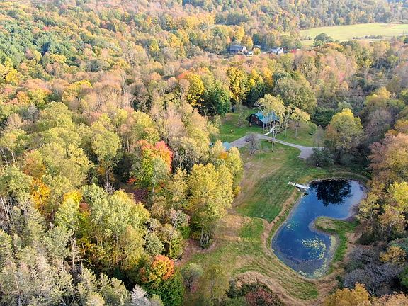 Idyllic Country Setting with this three bedroom, one and one-half bath Log Home. Beautiful and secluded setting on 36 mostly wooded acres. Tree lined driveway opens to meticulously maintained Log Home, large garage/barn and pond. The house has been tastefully remodeled - first floor highlighted by open living space with large family room with bay window and beautiful double sided stone hearth open to dining area and well appointed kitchen. Kitchen features easy working layout with large center island as well as granite countertops and stainless steel appliances. First floor also offers a large front living room with gas fireplace and bonus room with laundry and half bath. Second floor features three ample size bedrooms with tongue and groove ceilings and large full bath with jetted tub. Easy to enjoy the outdoors with a full length screened in front porch, as well as ample side and rear deck space. Newer steel roof, newer windows, new oil fired furnace - or heat for free with the outdoor wood furnace utilizing the abundance of trees on the property. One story garage/barn, well suited for storage or workshop. Great house, Awesome Setting! see attached 3D Virtual Tour.