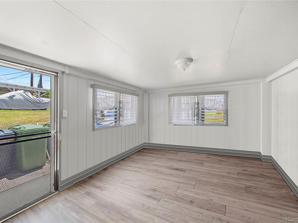 Freshly painted, single level attached home in a quiet location, with it's own yard, 2 parking spaces. Close to shopping centers, Kaneohe Marine Base, Kailua beach. Water, trash, sewer and yard services are included. Preferable for 2 to 3 max occupancy. Solar water heater, hardwood floor. One month deposit, lease 1(one) year, cat and small dogs are OK. No section 8. Owner pays for water, sewer, trash and yard work. Renters pay for electricity, internet 2 parking spaces in front of the unit Hardwood flooring