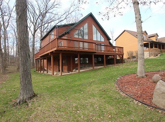 Gorgeous custom-built home with 3100+ square feet of living space. Chalet-style located in the Community of Lake Summerset. This home has character & charm with plenty of living space inside and outside on the wrap around deck and patio. The main floor features a Great Room with a stunning Two Story stone fireplace, cedar ceilings open to the eating area and the gourmet kitchen with large center island. Main floor master bedroom suite. Main Floor laundry room. Second floor loft overlooking the view plus two additional large bedrooms & full bath with a large jetted tub. Finished lower level features family room, wet bar area with sink,refrigerator, French doors to the patio, also an office & storage room. Newer furnace, central air, dishwasher. Amenities in the community offers boating, fishing, a beach area, swimming pool, disc golf, etc. There is also a campground area and plenty of winter activities. Relax or be active in this year around retreat.