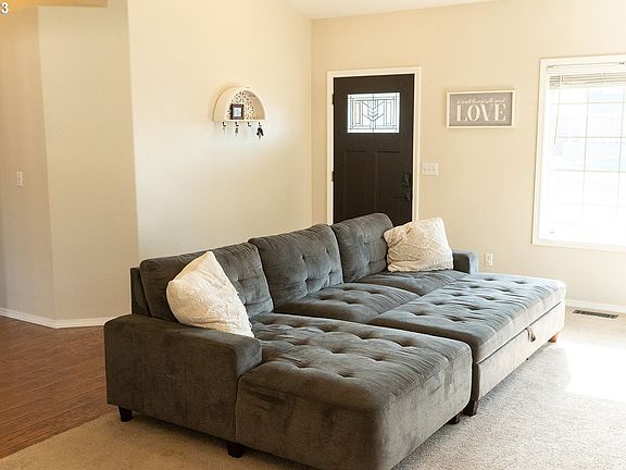 Beautifully updated home in Molalla's Big Meadow. The spacious & open living area displays elegant vaulted ceilings allowing for plenty of natural light to be let into the 2 living spaces. The Kitchen boasts white cabinets and SS appliances with a breakfast bar. The master suite displays an updated bathroom and a huge walk in closet. There is covered parking for trailer/boat/RV with 220V Plugin, & plenty of area to entertain in the back yard on the stamped patio.