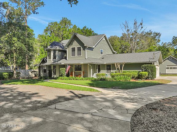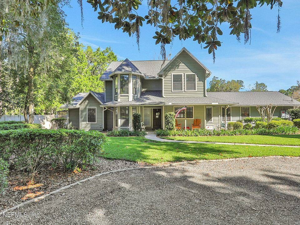Your St Johns private oasis awaits with over a half acre, 4 bedroom 3 full bath, remodeled home, complete with an attached 2 car PLUS another detached 2 car garage! NO HOA, park your boat/RV and design the yard of your dreams. New circular driveway in front, new kitchen, new REAL WOOD floors, new guest bath, new upstairs AC, 2020 roof, 2020 septic system, Rheem hybrid water heater, ... SOLAR PANELS with Tesla powerwall battery backup!! Sit out back in the screened patio, out front on your front porch, or by the wood burning fireplace. Large bedrooms with primary and 4th bedrooms on the first floor. Pool bathroom is ready for it's pool! ST Johns County schools, close to shopping, resturants, and 10 minutes from the highway. Detatched garage can be finished into a guest house!