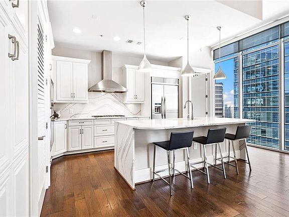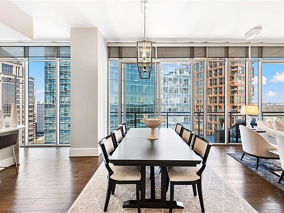 Experience unparalleled luxury and breathtaking Midtown and Piedmont Park views from this stunning 31st-floor corner residence above the Loews Atlanta Hotel. With two sides of glass, the home is filled with natural light and sweeping skyline views from every angle. Enjoy true privacy while staying steps away from the vibrant energy of Midtown and the tranquility of Piedmont Park’s trails and greenspace. This exceptional residence includes rare features like a private storage unit and two parking spaces—one with a dedicated Level 2 EV charger. The sleek, modern kitchen is a chef’s dream, outfitted with high-end stainless appliances, quartz countertops that bookmatch with the backsplash, and a wine beverage center. Designer lighting adds sophistication throughout, and the main living area impresses with a contemporary fireplace wrapped in limestone. An oversized island flows into the open living space, making entertaining seamless. Hardwood floors provide warmth, while expansive windows frame the cityscape from every room. The primary suite is a serene retreat with a spa-like ensuite bath featuring a Victoria + Albert soaking tub and a Carrara marble shower. Both bedrooms include custom walk-in closets, and a large utility room with washer/dryer is conveniently located off the primary suite. Residents at 1065 Midtown enjoy a heated rooftop pool, private clubroom, 24/7 concierge, and private elevator access to Exhale Spa & Gym. Exclusive Loews Hotel amenities include valet service, in-room dining, and fine dining at Saltwood. Just steps from Piedmont Park, the High Museum, Colony Square, and Atlanta’s top dining and entertainment, this is Midtown living at its finest. Schedule your private tour today.