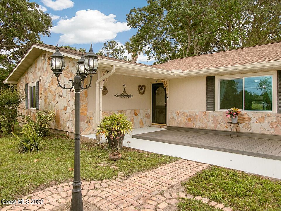 If you are looking for a terrific turn-key home on 1 acre, this beautiful 3 bedroom, 2 bath sparkling pool home on Merritt Island won't disappoint. This home is lovingly maintained and includes an open floorplan, newer roof (2021) & newer a/c (2019). Enjoy great views of the lake from the spacious sunroom as you witness beautiful wildlife or grab your rod and head to your private bass fishing pond on the other side of the property. This backyard paradise includes screened lanai & heated pool that offers a relaxing place to spend your time while overlooking the lake. Home has plenty of natural light, vinyl plank and tile flooring for easy maintenance, and one of the bedrooms includes a space saving Murphy bed. Amazing location with great views of rocket launches & wonderful school options. Located near Cape Canaveral/Orlando/Cocoa Village/beaches/Cocoa Beach Pier/wildlife sanctuaries/Kennedy Space Center/Blue Origin/OneWeb Satellites & more. Whether you are looking for a home to raise your family, retire, or relocate, you will want to see this one! Ask for our feature sheet to learn more about this home