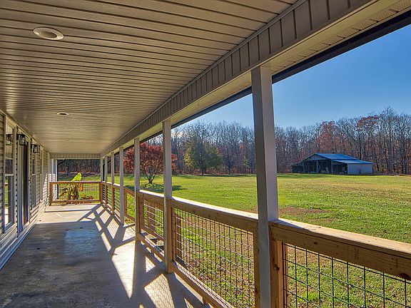 Countryside living in impeccable renovated home with stocked pond and 12.4 acres! Home features 4 bedrooms - master and 3 ensuite with private bath. Brand new kitchen features new stainless appliances, leathered granite countertops, recessed lighting and soft close cabinet drawers. Upscale LVP flooring throughout home, custom crown moulding, large laundry room & pantry, wired ethernet to all bedrooms & office and tankless gas water heater are among recent upgrades. 78' x 40' pole barn, 16' x 20' out building with power, 76' covered front porch, 52' covered back porch & patio and 24' x 24' 2-car attached garage. Master suite features gas fireplace, custom tile shower, large walk-in closet with laundry hookups, crown moldings and private deck area. Two HVAC units with natural gas heat are less than 2 years old. Property has high speed fiber optics internet service. Fenced back yard are for kids and pets with fire pit area.