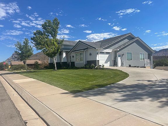 Contact Owner Sherree Olsen at 435.817.2579. Gorgeous spacious home with open concept and oversized 3 car garage. 5 bedroom and 3 bath plus office in the main house. Full Casita/Guest House with one bed, one bath, family room, kitchen, dining room and single attached garage. Could be rented out for extra income. Home has security system and downstairs family room is wired for surround sound. Home sits on one acre. This house comes with lots of extras! There is a 14x24 workshop with heating/ac, 24x41 RV Carport with full hookups, 12x20 pavilion for entertaining, a playground area for kids, installed customizable Everlight Christmas/Holiday Lights, lots of storage and a concrete safe/vault room!!! All the initial electrical, gas and plumbing has been done for a hot tub, pool and pool house too! Great home, yard and location! Plus the view is gorgeous!