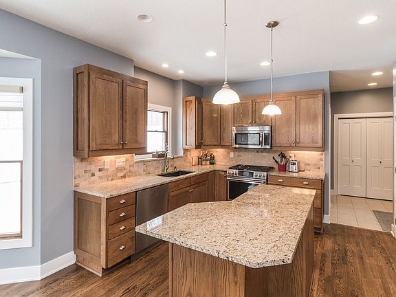You need to see this contemporary craftsman 4 BR home w/gabled roof, stately columns, front porch, & stone/shake accents, found in a lovely established neighborhood on a cul-de-sac. An inviting 2-story foyer welcomes you home and is flanked by a private office & formal dining. The kitchen features timeless shaker cabinetry w/brushed nickel, island seating, generous counter space, & appliance package w/gas stove. Interior details include rich oak floors, white trim, a shiplap/stone FP, & granite counters. The living/dining area was recently remodeled to offer a large open concept space where 9 large windows offer views of the fenced yard, patio, & tree line. First floor laundry includes W&D plus there is a mudroom w/built-in. The master is an oasis w/tray ceiling, WIC, dual vanities, tiled shower, & whirlpool tub. Guest bath up w/granite dual vanities & a stylish ½ bath on main. There's a large family room in the LL plus a substantial storage room. Waukee Schools. HSA 1-year warranty.