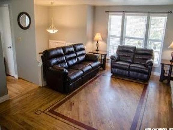 Majestic mountain views surround this beautiful home located on the Bench (hillside) near trails and parks. Updated open floor plan and modern upgrades throughout including a new hot tub set in the large deck. Beautiful inlaid hardwood floors on the first level with tile upgrades in kitchen and baths. Over-sized garage with shelving and RV parking for toys. Upgraded stainless steel appliances, gas range and oven for the gourmet cook. Outdoor fire pit for casual entertaining. Two fireplaces - one wood burning and the other gas plumbed. New windows in majority of home. Ceiling fans and skylight in hall. New electrical outlets and new automatic sprinkler system using secondary water!