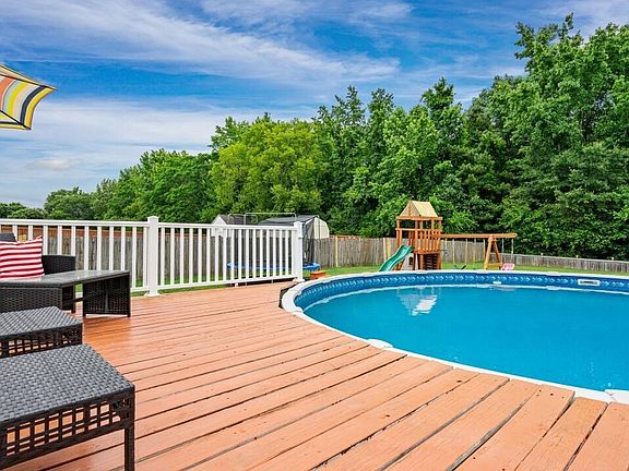 Enjoy the view in this lovely ranch home overlooking the above ground pool, flat fenced back yard, surrounded by an updated deck, screen porch and oversized grilling deck off the garage/mudroom. This home has new carpet, Roof (2019), updated paint, new appliances and granite countertops in kitchen and nook that features a custom island with storage, built-in buffet and cabinetry. Laundry room located off kitchen by a pocket door, includes pantry/closet with cabinets and shelving (washer/dryer do not convey). Spend an evening by the fireplace in the vaulted family room or entertain in the dining room with sliding door and tons of natural light. Need a space to work? The built-in cabinets in the office provide a perfect spot for working or using as a guest room with the built-in Murphy bed. The primary boasts a vaulted ceiling, primary bathroom with dual vanities, more built-in cabinets, shower/tub combination & large walk-in closet. Hall bathroom features updated vanity and lighting, while providing ample space. Secondary bedrooms are spacious and also feature built-in bookshelves in one room. Need a drop zone? Check out the mudroom off the garage that has ventilated shelving, door to back yard and direct access to the garage that has a sink and tons of storage cabinets and shelving. The back yard has been freshly spruced up and ready for a new buyer to enjoy all it has to offer, like fire pit area, swing, shed & more! This home gives you the enjoyment of outdoors, while coming inside to all the updates and areas to relax. Please see additional information about this home in the documents. *Septic was pumped 3-4 months ago. The back deck from the garage is built over the septic tank, but both access points are accessible when part of the deck is removed. Previous sellers built the deck as such. Primary does not have any windows due to the previous owners addition of office and formal dining room (permitted, per previous MLS listing). There are no records with Johnston County to confirm that being permitted, as they do not keep records beyond 6 years from when work is performed. The addition of the office and formal dining room did cause the primary bedroom window(s) to be removed. Per building code, a bedroom must have a window for egress, but current owners purchased the home as such in 2016 with no issues from appraisal. Home is marketed as a 3 bedroom home due to the septic permit on file allowing such, but the consideration of the primary bedroom missing an egress window, should be noted and is disclosed by current sellers.