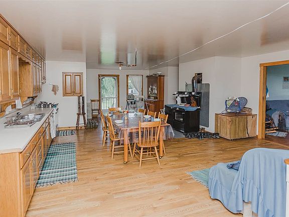 Large home sitting at the end of a dead end road! Two story home with wood floors, big kitchen, full basement, and more! Approximately 81 beautiful acres with pond, fencing, and buildings. 48x70 barn, 28x32 barn, 30x40 insulated shop, 10x20 outbuilding. Great farm for livestock, crops, and deer and turkey hunting. Garden spaces, fruit trees, fruit vines! Live off the grid. Home currently does not have electricity. Additional land and homes may be available.