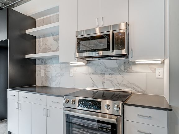 This second floor unit offers an open floor plan with quartz countertops and modern flat-slab cabinetry. Stainless steel Bosch appliances complete the kitchen. United Lofts industrial feel is complemented by 9ft ceilings and sealed concrete floors. Ample natural light is allowed in by the industrial casement windows. MOVE-IN READY!
