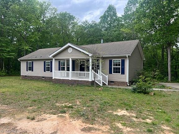 3 bedroom 2 bath Modular home on a spacious partially wooded 1.83 acres in a quiet country setting. Only 4 miles from I40. Conveniently located near Winston-Salem/Greensboro, Statesville and Charlotte. Cozy fireplace in living room. Must see for country living. Covered front porch for relaxing and unwinding at the end of the day. The primary suite features a spacious bathroom with a garden tub, separate shower and large walk in closet. Kitchen offers a large island and a pantry. Large laundry room. Walk in closets in every bedroom. Concrete driveway and concrete walkway. County water. Lots of privacy. Must see!