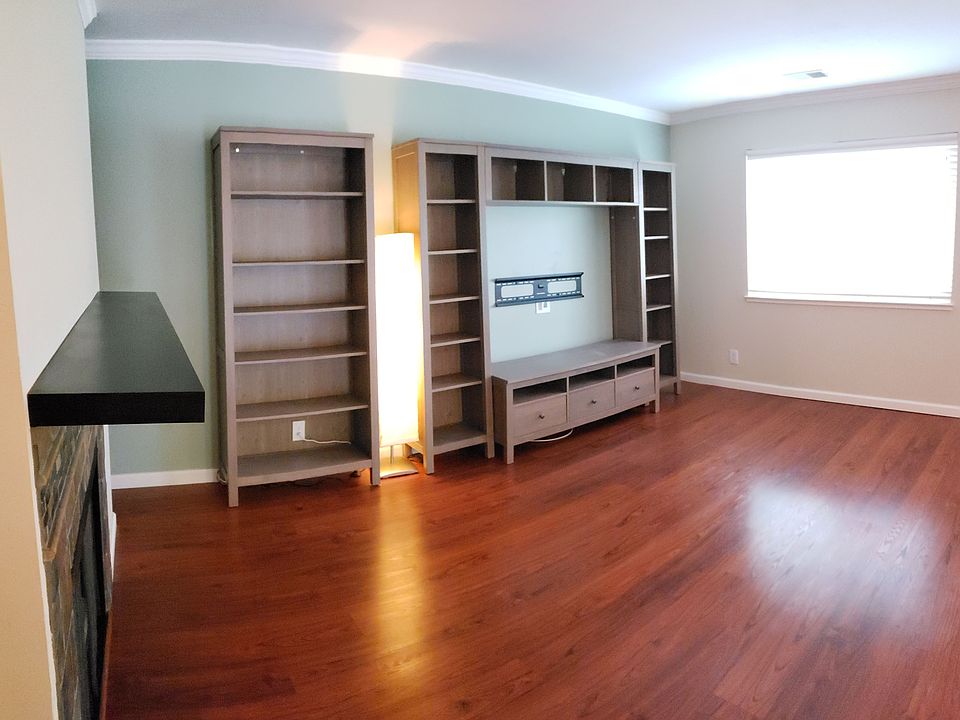 Wonderfully spacious and bright 2 bed, 2 bath. Renovated kitchen and bathrooms. Crown moulding, granite countertops and Brazilian Cherry cabinets. Electric range, microwave, new dishwasher and in-unit washer and dryer. Water heater and Air Conditioner. Unit is on the second floor with no neighbors overhead. South facing balcony great for barbecuing or sitting in the sun at the end of a work day. Close to 680 freeway entrance and 12 to 15 minute walk to the Pleasant Hill BART station. Two (2) parking spaces which include an enclosed detached garage as well as one (1) non-covered parking spot. Cable and internet ready. Community pool. No pets please. Owner pays for trash. Tenant is responsible for water, gas and electricity. Entertainment center attached to wall and is included.
