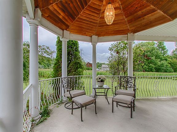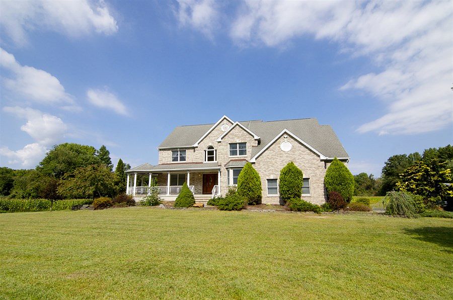 Elegant 5 bedroom center hall colonial set on 7 acres features a formal living room, formal dining room, a gourmet kitchen with center island, dry bar, granite counters and backsplash open to an expansive deck and two story family room with wood burning fireplace. Full finished walk out basement with wet bar and wine storage room make this home perfect for entertaining both inside and out.