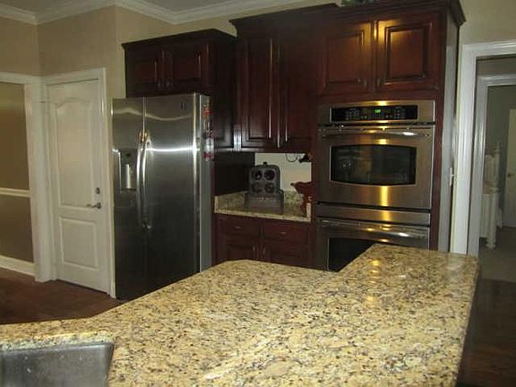 4 bdrm, 3.5 ba Brick & Stone home w/open floor. Eat-in kitchen w/ss appl & granite. Formal Dining, FP, hardwood flooring, tile in bathroom & laundry. Lanscaped, fenced backyard w/covered porch & plumbing for gas grill & wiring for hot tub.