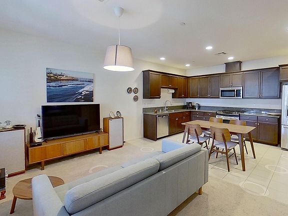 Conveniently located in Highlands Village in the highly sought-after community of Carmel Valley. This townhome has 2 bedrooms, 2 1/2 bathrooms and is just 1275 sqft of living space. Enjoy the open concept living as the kitchen is open to the living room. The kitchen has stainless steel appliances, granite counter tops and eat in dining. The master bedroom is spacious with natural light, large master bathroom - separate soak tub and standing shower with glass enclosure and dual sink vanities and offers an oversized walk in closet. The secondary bedroom is large with its own private ensuite bathroom. This home also has a guest bathroom downstairs plus an attached 2 car garage, plantation shutters throughout, A/C, upstairs laundry, gated front porch and has an abundance of natural light. The community has a pool, built in BBQ's, fire pit, fireplaces, a gym, community center with a media room, kitchen, conference room and a park. Located in the amazing Del Mar Union / San Dieguito School District. You are just minutes from the beach, One Paseo, Del Mar Highlands, 20 minutes to the airport / downtown and just down the street from Sage Canyon Elementary and The Sage Canyon Neighborhood Park. Owner pays trash collection, and tenant responsible for all other utilities such as water, electric, cable, internet, gas etc. Must be non-smoking.