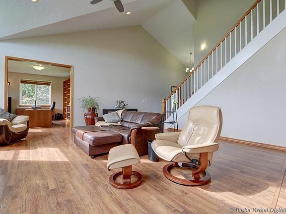 Incredible views of Lazy Mt. & PP from this 4/3.5/3 home located in a great commuter area! 'Like' new home built by Foster's Fine Finish's with a true chef's kitchen including, lg granite Island, 42' Hickory cabinets. Vaulted great room, fireplace, library w/cherry built ins, radiant heat, & Concrete board siding. Contemporary 2 story could live like ranch- Master suite on main floor.