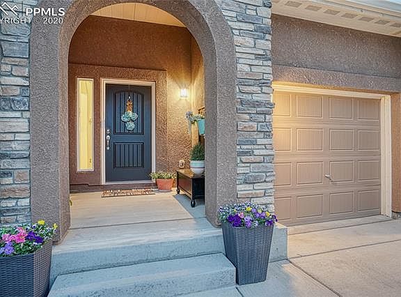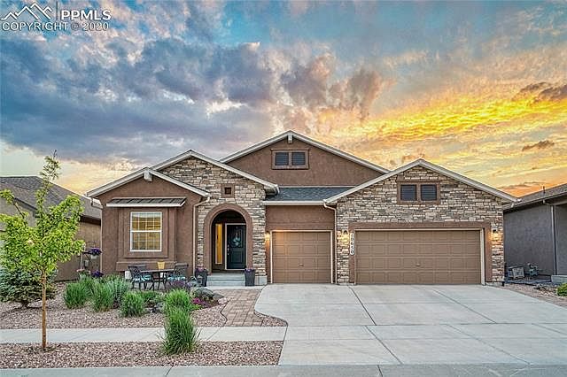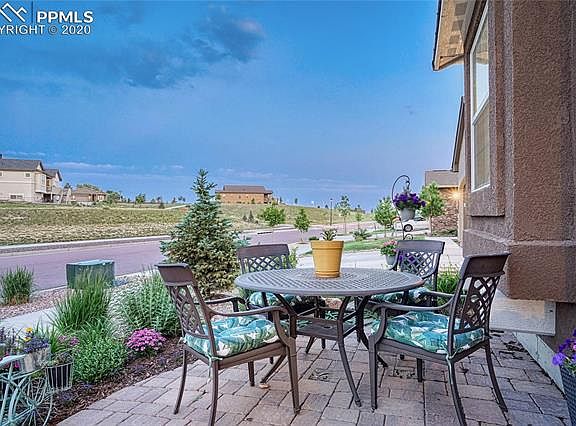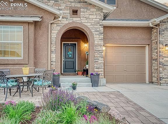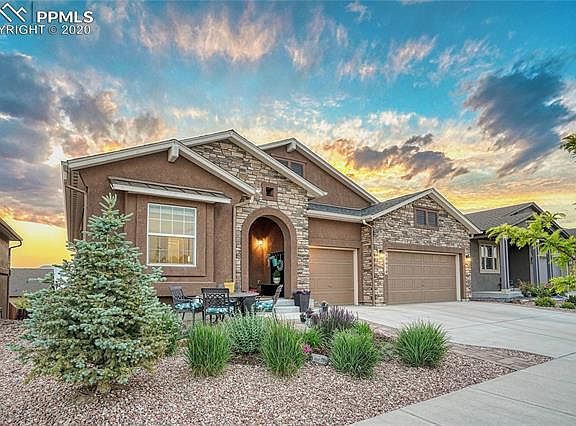 Fantastic stucco ranch in North Fork with 5BD/4B/3CAR, amazing Pikes Peak views & finished walk-out basement. Great room features 10' ceilings, multiple windows, 42" Cosmo fireplace & fully tiled accent wall & surround sound system w/ custom designed built-in ceiling speakers. The kitchen and eating area boast slab granite island w/sink & breakfast bar, S/S appliances, subway tile, soft touch drawers & slide-out shelves, pantry, wood floor & a coffee nook. Walk out to the 18' x 9' covered composite deck w/recessed lighting, gas line for grill & amazing views! The formal dining room features wood floors, a stunning light fixture & nook for hutch. Main-level master features Pikes Peak views, a ceiling fan & adjoining 5-piece bath w/double vanity, soaker tub, tile floors, walk-in shower w/bench & large walk-in closet. 2nd bedroom, including a large walk-in closet and bench seat, on the main floor. Finished walk-out basement offers rec room w/3 large windows, walk-out to covered patio and is roughed in for a wet bar. Rounding out the basement are 3 bedrooms - each w/walk-in closet & one w/an en suite 3/4 bath, a full bath and additional storage space. Professional landscaping, 3 outdoor living spaces, proximity to I-25 & Powers Blvd, schools, shopping, dining & entertainment and incredible views make this a must-see!