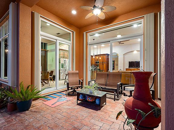 Recent upgrades demonstrate the owners' commitment to quality and efficiency. The 2019 roof and gutter system ensures peace of mind, while the complete garage storage system with epoxy floors offers exceptional organization. The home is equipped with modern conveniences including Nest thermostats, a security alarm system, and is pre-wired for a generator. Impact sliding glass doors and bathroom windows, installed in 2021, provide storm protection alongside the accordion shutters.
